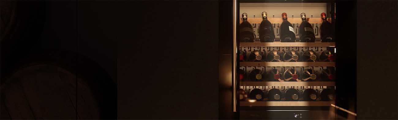 Вы можете установить на кухне винный шкаф Sommelier со светодиодной подсветкой, элегантный и сдержанный, идеально подходящий для хранения вина. Его установка дополняется регулируемыми ножками и реверсивной дверью, которую можно открывать как вправо, так и влево.