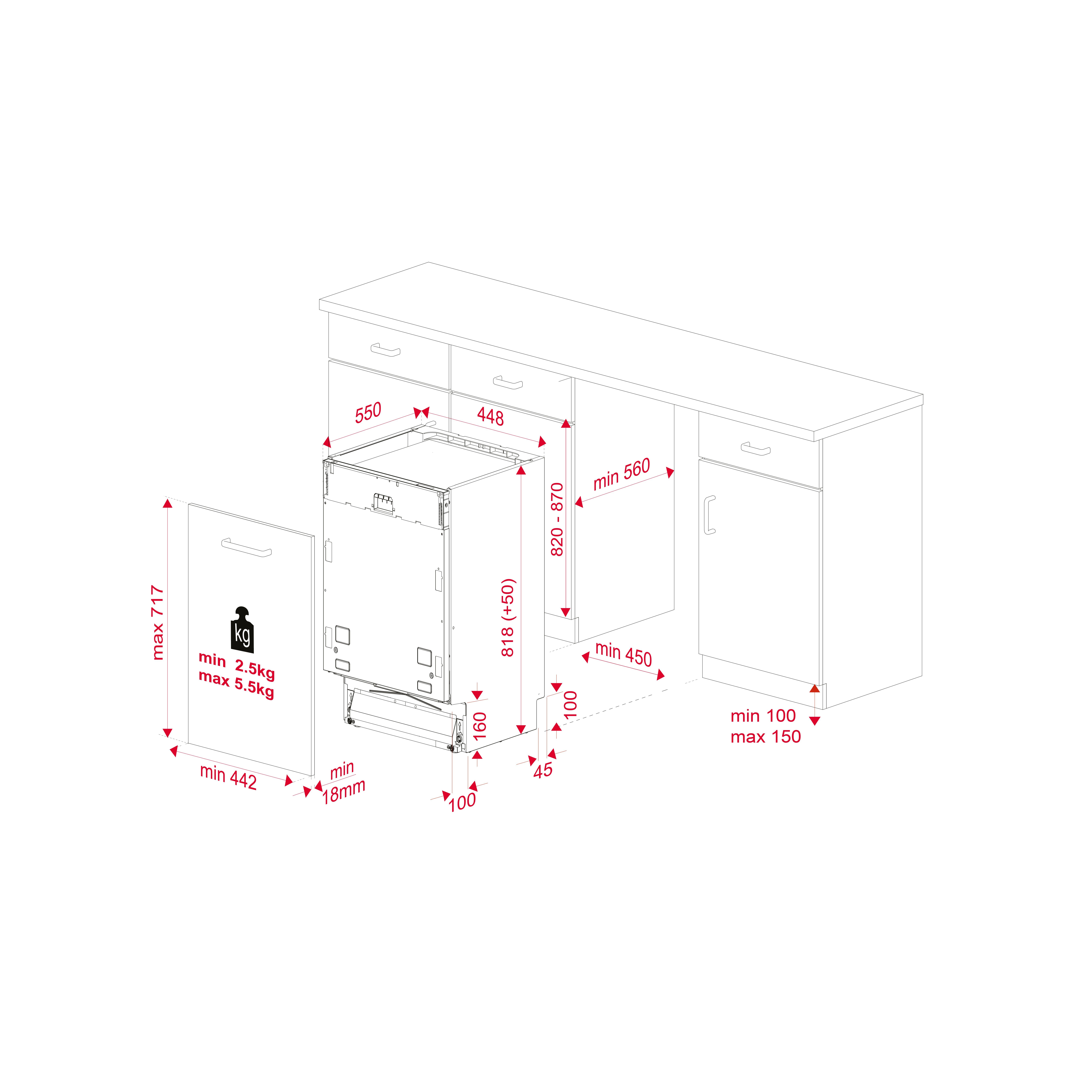 полновстраиваемая посудомоечная машина на 45 см, вместимость: 10 комплектов посуды, 2 корзины; верхняя корзина: фиксированная для маленьких или средних тарелок, стаканов и т.п., полочка для чашек, бокалов; 3 уровня высоты установки верхней корзины при помощи системы Push-up; нижняя корзина: полугибкая FlexiSet2 - 2 складных фиксатора и корзина для столовых приборов; инверторный двигатель обеспечивает тихую работу и низкое энергопотребление; чёрная панель управления с электронными кнопками, LCD дисплей с белыми символами; Aqualogic - сенсор загрязнённости воды; 7 программ: автоматическая (40-65°, 110-173'), интенсивная (70°, 170'), 1 час (60°, 58'), мини 30 (35°, 30'), ECO (50°, 245'), предварительная мойка (-°, 15'), автоочистка (-°, 75'); 5 температурных режимов:  35°, 40°, 50°, 65°, 70°C; 6 дополнительных функций: половинная загрузка, старт/пауза, отложенный старт до 24 часов, Express, Extra сушка, Extra полоскание; MultiCleaner Sensor - посудомоечная машина автоматически распознаёт таблетки 3 в 1 без специальной функции; индикаторы на панели управления: вкл./выкл., низкий уровень соли, низкий уровень ополаскивающего средства, выбранная программа, выбранная функция, отложенный старт, оставшееся время; система защиты от протечек AQUASTOP обеспечивает безопасность, использования посудомоечной машины и спасает дом от затопления во время аварийных ситуаций: система срабатывает в случае протечки или разрыва шланга; cистема защиты от протечек AQUASAFE - защита от вытекания воды и затопления помещения: в случае утечки воды поступление воды в посудомоечную машину автоматически прекращается; внутренняя камера из нерж. стали, конденсационная сушка; допустимая масса фасада для навешивания на дверь 2,5-5,5 кг.; класс эффективности энергопотребления/мойки/сушки: A++ /А /А; показатели при стандартном цикле мойки (Eco 50): расход воды 9,5 л / цикл, 2660 л / год, уровень шума: 47 дБ, потребление электроэнергии 0,755 кВт / цикл, 211 кВт / год, продолжительность цикла 3 ч 59 мин
