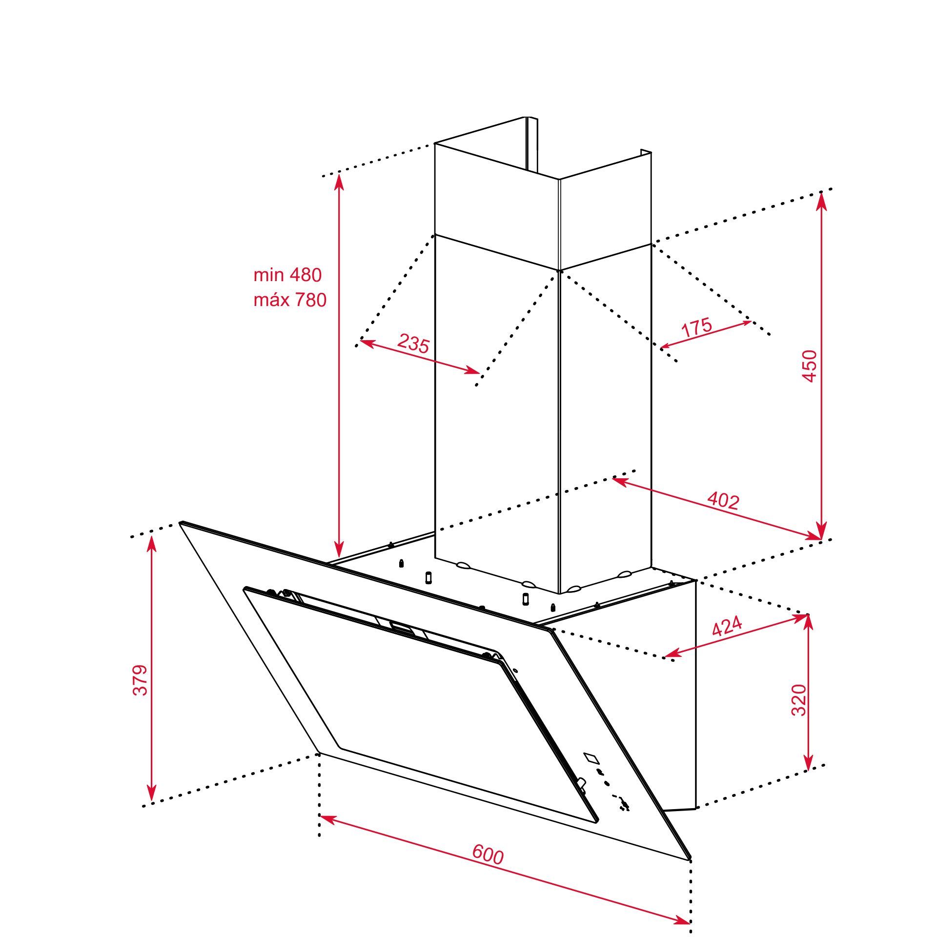 пристенная вертикальная вытяжка на 60 см; мотор EcoPower (с одной турбиной); периметральная система всасывания; сенсорная панель управления и дисплей с белыми символами; 3 скорости + интенсивный режим; откидная панель из чёрного стекла с поршнем для плавного хода; функция "Свежий воздух" работает 24 часа: 10 мин. включено / 50 мин. выключено; под панелью 4-х слойный алюминиевый жировой фильтр; боковое расположение панели управления с удобным расположением кнопок: переключение скоростей находится в нижней части; таймер остановки работы; индикация загрязнения фильтров, внутренний выдвигаемый коллектор масла; светодиодная лента 1*7 Вт; вытяжка работает в режиме отвода и рециркуляции; для режима рециркуляции:  используется заглушка воздуховода L330 без угольной фильтрации (идёт в комплекте с вытяжкой) или на двигатель устанавливается 1 прямоугольная кассета с активированным угольным фильтром в виде сот из антрацита -каменного угля наиболее высокой степени углефикации(закупается опционально); производительность: мин.307 м3/ч – макс.698 м3/ч, уровень шума: мин.61 дБ – макс.72 дБ; в комплекте: переходник 150/120 мм, европейская вилка, монтаж возможен также без воздуховода; класс энергоэффективности: A+, класс гидродинамической эффективности: A, класс эффективности освещения: A, класс эффективности фильтрации жира: G, максимальная номинальная мощность, Вт: 230, сделано в Испании